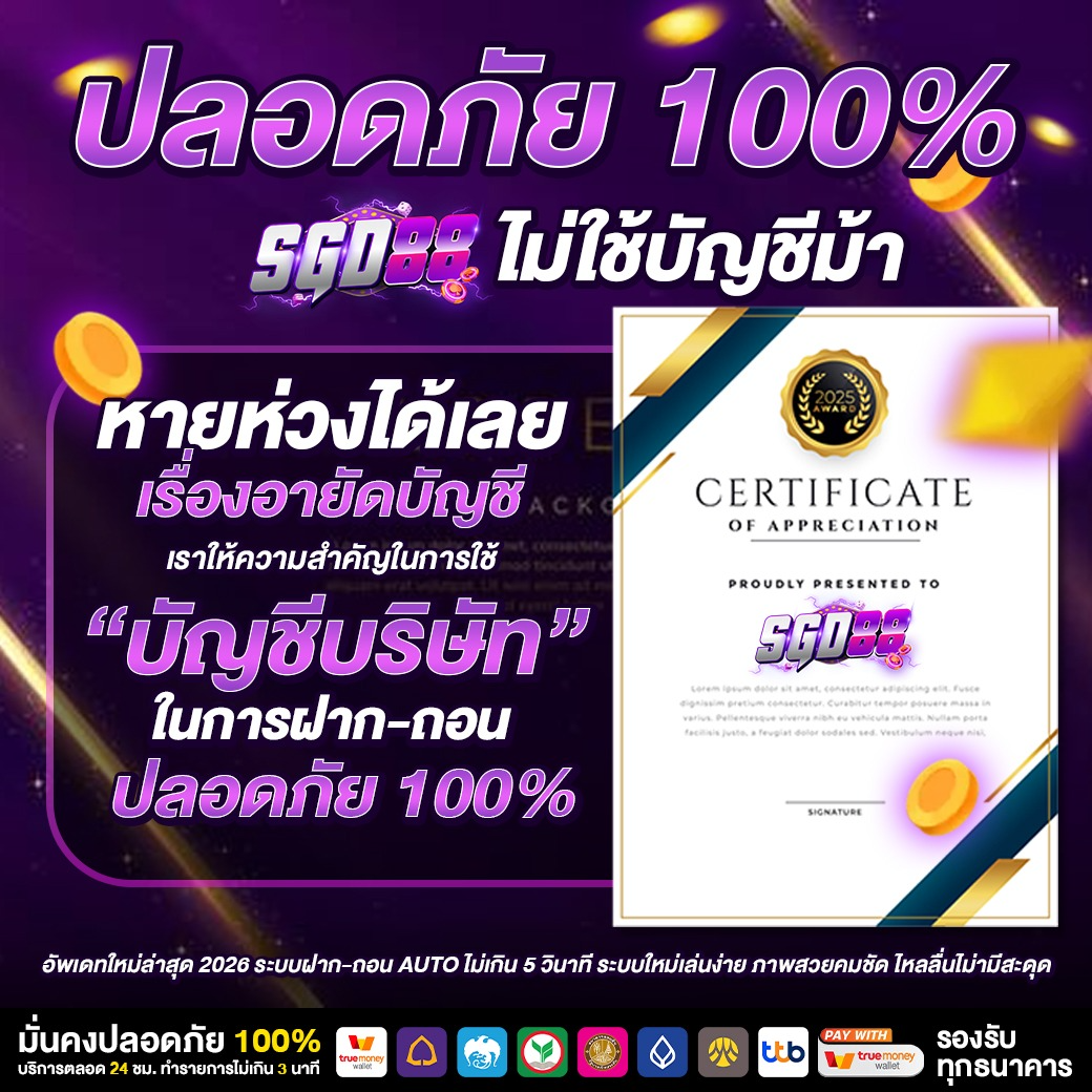 ด้วยระบบฝาก-ถอนอัตโนมัติที่รวดเร็วและเชื่อถือได้ของ SGD88 คุณจึงสามารถมั่นใจได้ว่าการทำธุรกรรมทางการเงินของคุณจะราบรื่น ปลอดภัย และไม่มีสะดุด ให้คุณโฟกัสกับการเดิมพันได้อย่างเต็มที่ โดยไม่ต้องกังวลเรื่องการรอคอยหรือความยุ่งยากในการทำธุรกรรม