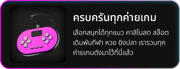 ตอบ : มีคาสิโนออนไลน์ครบวงจร เกมสล็อต บาคาร่า แทงบอล หวย ไก่ชน มวย และเกมพนันออนไลน์อื่นๆ ให้เลือกเล่นมากมาย รองรับทั้งมือถือและคอมพิวเตอร์